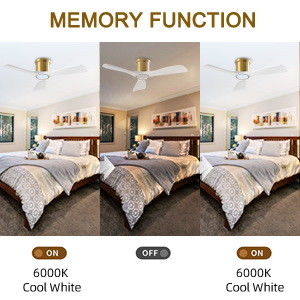 El ventilador de techo de perfil bajo está construido con un motor de corriente continua eficiente y de ahorro de energía que ofrece opciones de flujo de aire reversible para verano e invierno.