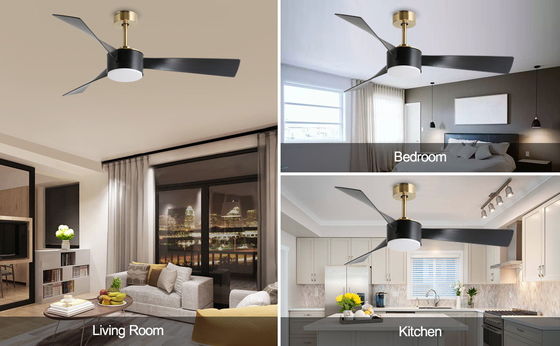 Iluminación de ventilador de techo inteligente de 52 pulgadas de ahorro de energía en negro
