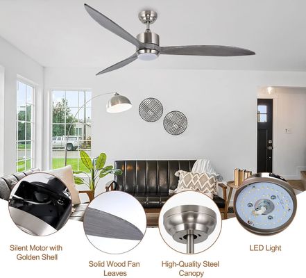 Ventilador de techo silencioso con motor de corriente continua con control inteligente de APP, luz LED de 3 colores atenuable y opción de 6 velocidades